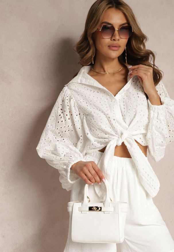 Renee - Biała Haftowana Koszula z Ozdobnym Rękawem Shaila. Kolor: biały. Materiał: bawełna. Długość: krótkie. Wzór: haft. Sezon: wiosna, lato