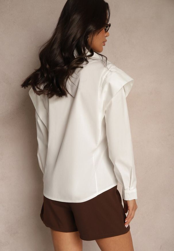 Renee - Jasnobeżowa Koszula Apostoros. Okazja: na co dzień, do pracy, na spotkanie biznesowe. Typ kołnierza: kołnierzyk klasyczny. Kolor: beżowy. Materiał: koronka, jeans. Styl: biznesowy, klasyczny, casual