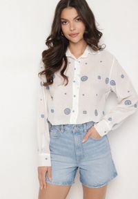 Born2be - Biała Wiskozowa Koszula z Transparentnym Żabotem Soepe. Okazja: na spotkanie biznesowe. Typ kołnierza: z żabotem. Kolor: biały. Materiał: wiskoza. Długość rękawa: długi rękaw. Długość: długie. Styl: biznesowy, klasyczny