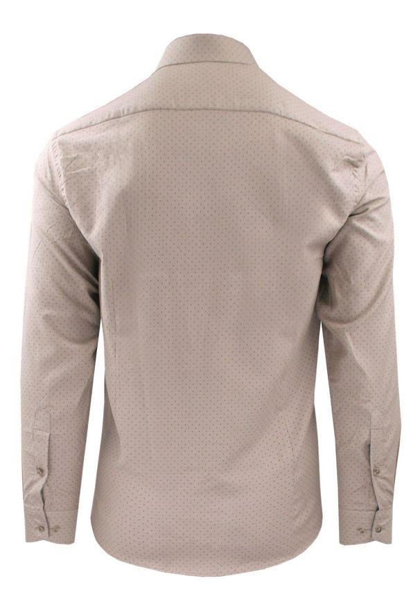 Taliowana Koszula Wizytowa, Męska - Victorio - Beż w Prążek. Kolor: beżowy, wielokolorowy, brązowy. Materiał: bawełna, elastan. Wzór: prążki. Styl: wizytowy