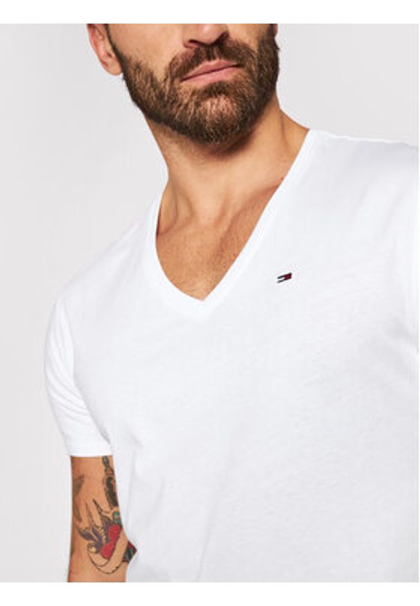 Tommy Jeans T-Shirt Essential Flag DM0DM20740 Biały Slim Fit. Kolor: biały. Materiał: bawełna