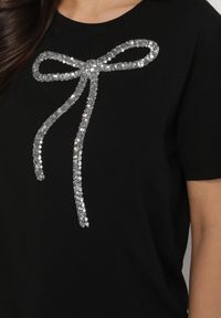 Born2be - Czarny T-shirt z Bawełny z Trójkątnym Dekoltem Semiora. Okazja: na co dzień. Kolor: czarny. Materiał: bawełna. Styl: klasyczny, casual