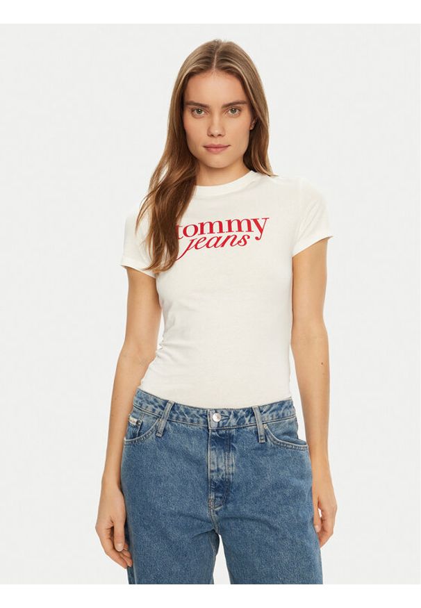 Tommy Jeans T-Shirt DW0DW20459 Biały Slim Fit. Kolor: biały. Materiał: bawełna