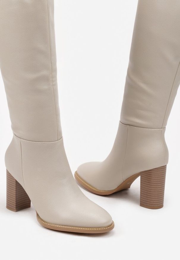 Born2be - Beżowe Kozaki Radeken. Wysokość cholewki: przed kolano. Zapięcie: zamek. Kolor: beżowy. Materiał: zamsz. Szerokość cholewki: normalna. Obcas: na obcasie. Styl: elegancki. Wysokość obcasa: średni