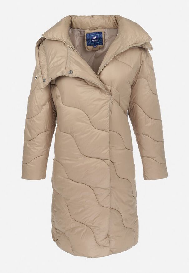 Renee - Jasnobeżowa Kurtka Pikowana na Napy z Kołnierzem Firwale. Kolor: beżowy. Materiał: tkanina. Sezon: jesień