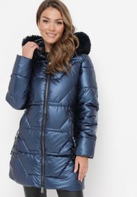 Born2be - Biała Kurtka Pikowana z Kapturem z Odpinanym Futerkiem i Dłuższym Tyłem Clorina. Okazja: na co dzień. Typ kołnierza: kaptur. Kolor: biały. Materiał: futro. Długość: długie. Wzór: aplikacja. Styl: klasyczny, casual, elegancki