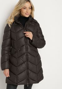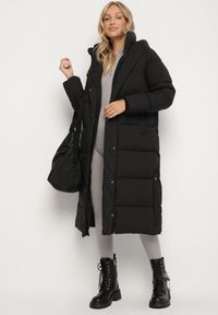 Born2be - Czarna Pikowana Kurtka Płaszcz za Kolano ze Ściągaczami Balley. Okazja: na co dzień. Kolor: czarny. Materiał: tkanina, dzianina. Długość: długie. Wzór: aplikacja. Sezon: zima, jesień. Styl: klasyczny, casual, elegancki