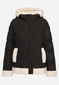 Born2be - Czarna Pikowana Kurtka z Odpinanym Kapturem i Futerkiem Ściągana w Talii Zaisin. Okazja: na co dzień. Kolor: czarny. Materiał: futro. Styl: casual