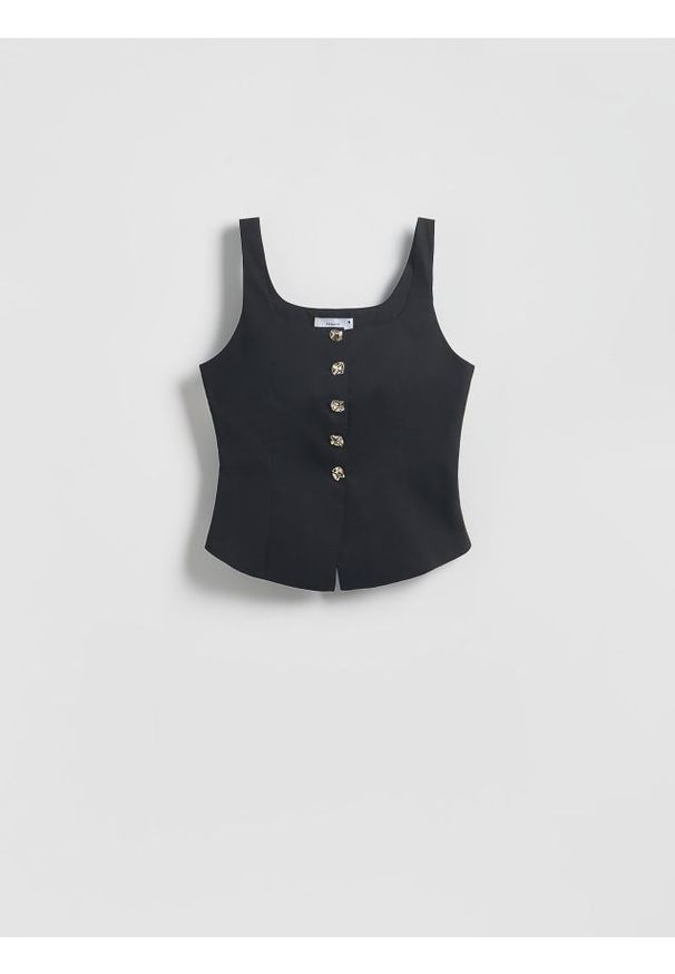 Reserved - Kamizelka z kapturem - czarny. Typ kołnierza: kaptur. Kolor: czarny. Materiał: tkanina. Wzór: gładki