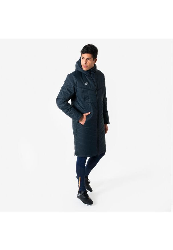 KIPSTA - Długa parka do piłki nożnej. Kolor: szary, wielokolorowy, czarny. Długość: długie. Sport: piłka nożna
