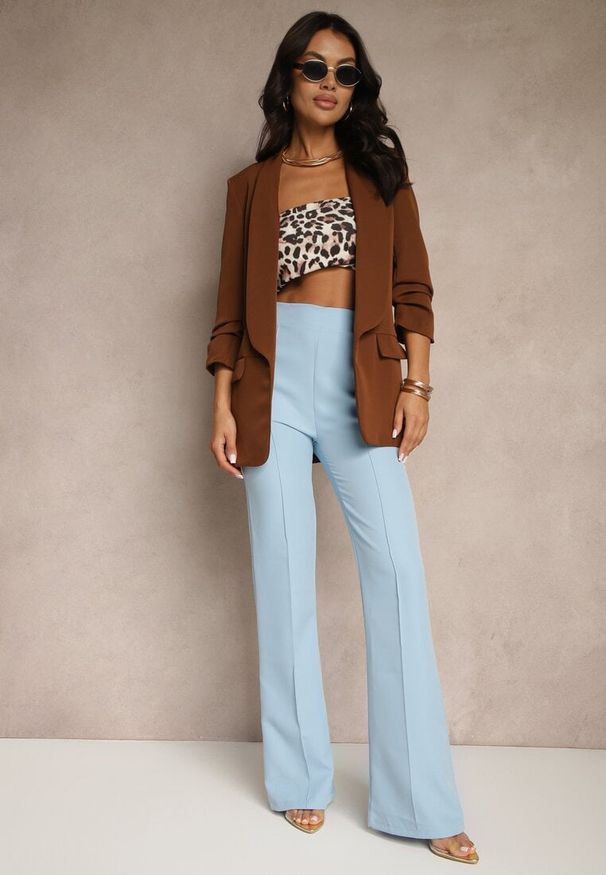 Renee - Brązowa Pudełkowa Marynarka z Usztywnioną Linią Ramion Rillie. Okazja: na co dzień. Kolor: brązowy. Materiał: jeans. Styl: casual, elegancki
