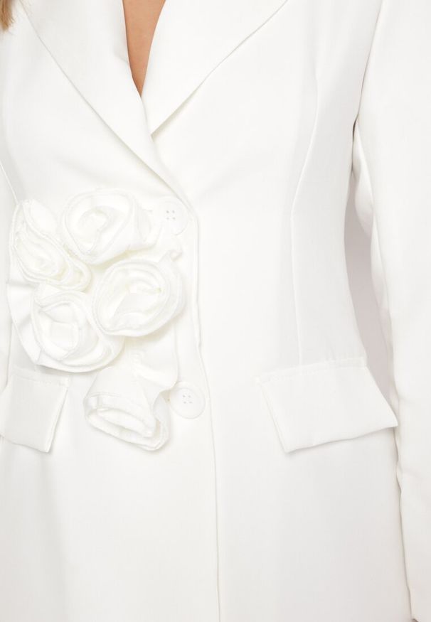 Renee - Biała Dwurzędowa Marynarka z Wiskozą i Usztywnianą Linią Ramion Ellirisa. Okazja: na co dzień, na spotkanie biznesowe. Kolor: biały. Materiał: wiskoza. Styl: biznesowy, klasyczny, casual, elegancki
