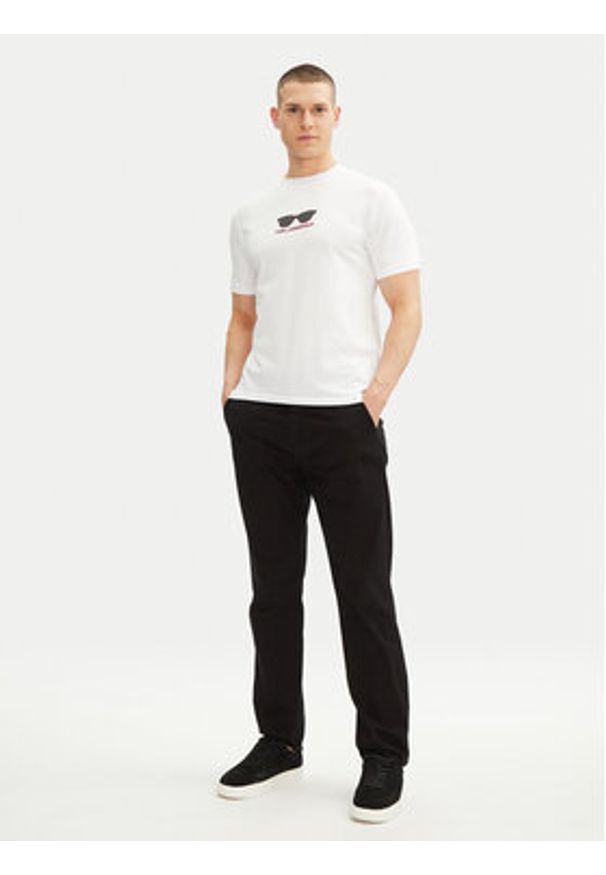 Karl Lagerfeld - KARL LAGERFELD T-Shirt 755710 500224 Biały Regular Fit. Typ kołnierza: dekolt w karo. Kolor: biały. Materiał: bawełna