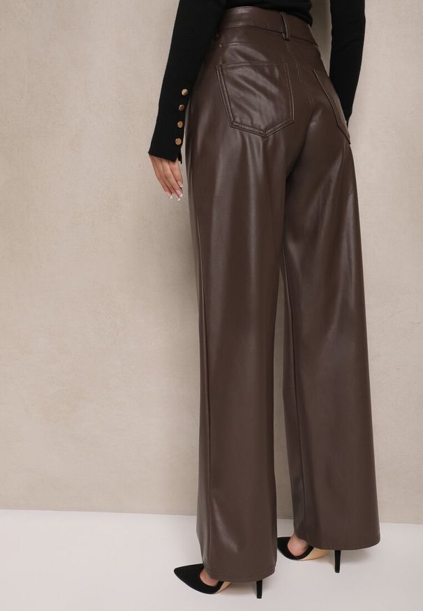 Born2be - Brązowy Klasyczny Płaszcz z Paskiem w Talii Elwari. Kolor: brązowy. Materiał: skóra. Styl: klasyczny