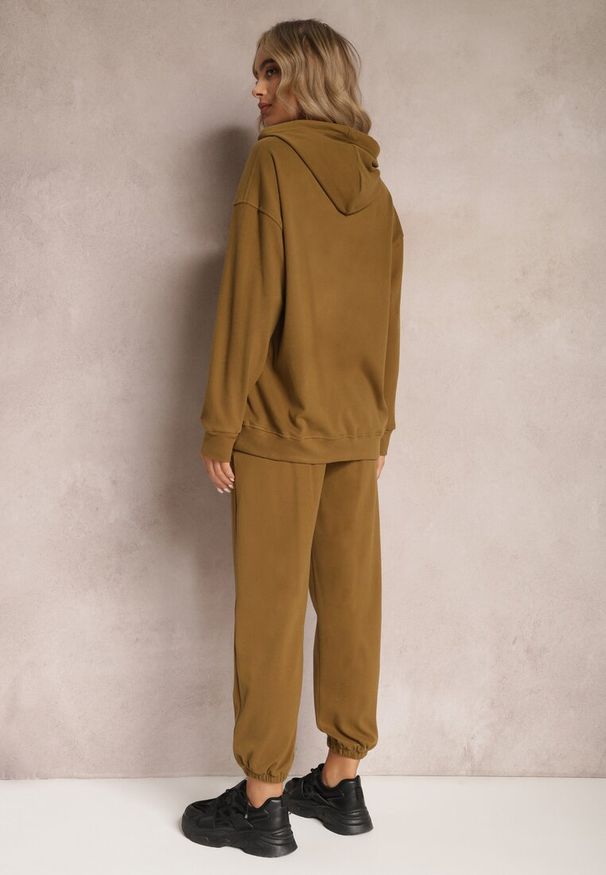 Renee - Jasnobrązowy Komplet Spodnie o Szerokim Kroju i Asymetryczna Bluzka z Marszczeniem Nitara. Kolor: brązowy