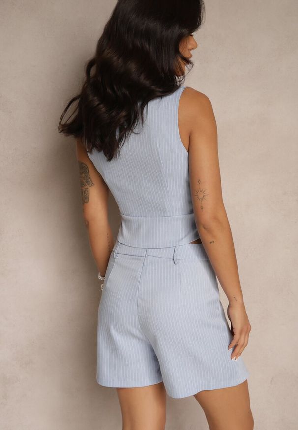 Born2be - Niebieski Bawełniany Komplet Bluzka z Wiązaniem i Spodnie Palionis. Kolor: niebieski. Materiał: bawełna