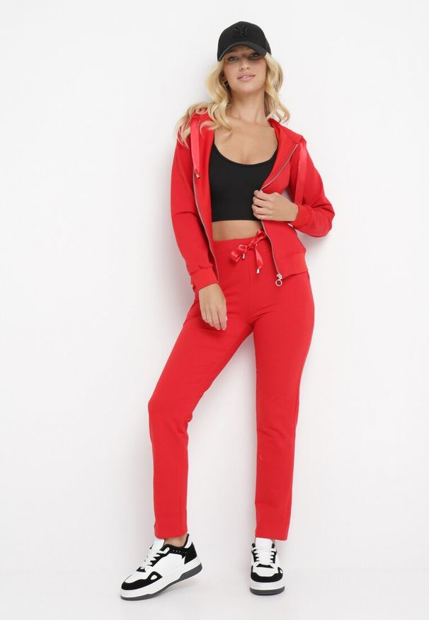 Born2be - Czerwone Spodnie o Długości 3/4 z Elastyczną Gumką w Pasie i Wiązaniem Cidasara. Kolor: czerwony