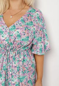 Born2be - Fioletowo-Miętowa Sukienka Konmey. Typ kołnierza: dekolt kwadratowy. Kolor: miętowy. Wzór: kwiaty. Sezon: lato. Styl: retro. Długość: mini