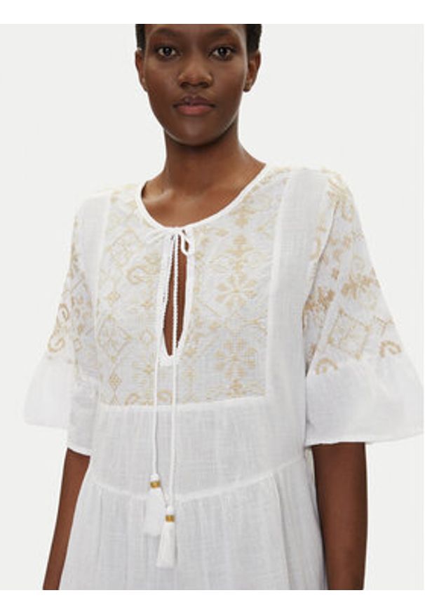 Iconique Sukienka letnia IC25-018 Biały Relaxed Fit. Kolor: biały. Materiał: bawełna. Sezon: lato