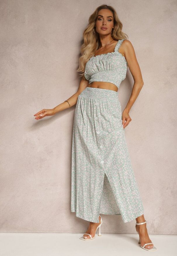 Renee - Jasnobeżowy Komplet z Bawełną Spódnica i Rozpinana Bluza Evorea. Kolor: beżowy. Materiał: bawełna