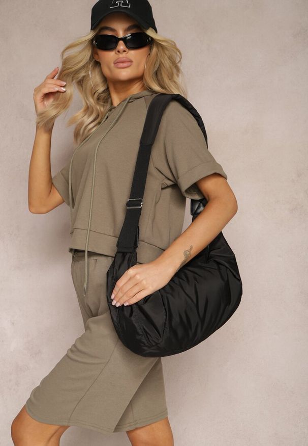 Renee - Czarny Komplet Dresowy Krótka Bluza z Kapturem i Spódnica Ołówkowa Agordia. Kolor: czarny. Materiał: dresówka