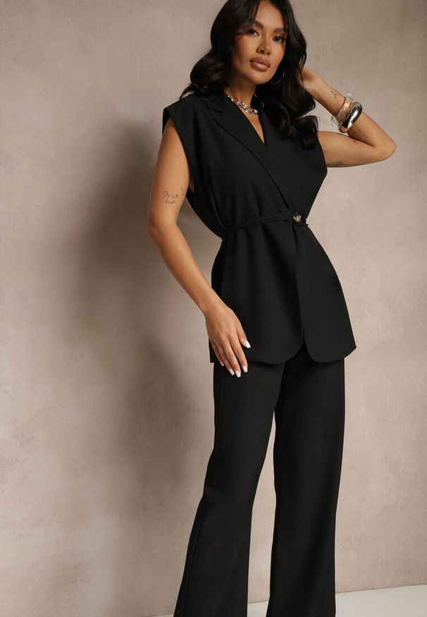 Renee - Czarny Elegancki Komplet Top z Guzikami i Szerokie Spodnie z Wiskozy i Bawełny Divianne. Kolor: czarny. Materiał: bawełna, wiskoza