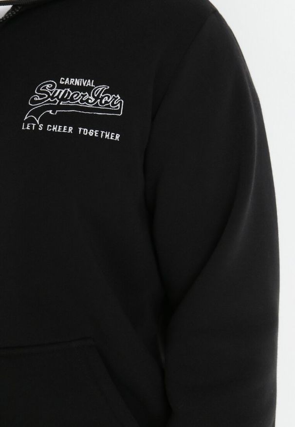 Born2be - Czarna Bluza z Bawełną Wykończona Paskami i Ściągaczami Mevara. Okazja: na co dzień. Kolor: czarny. Materiał: bawełna. Długość rękawa: długi rękaw. Długość: długie. Wzór: aplikacja. Styl: casual, sportowy