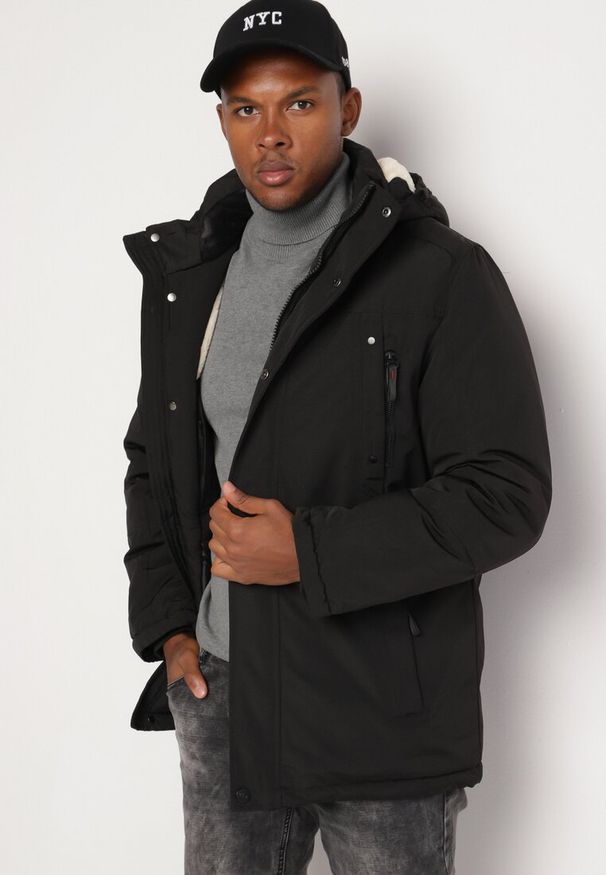 Born2be - Czarna Kurtka z Kapturem Chowanym w Stójce i Kieszeniami Naienna. Typ kołnierza: kaptur, kołnierzyk stójkowy. Kolor: czarny