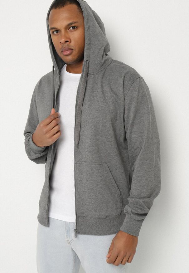 Born2be - Szara Bluza z Bawełną Kapturem i Kieszenią Typu Kangurek Norrise. Okazja: na co dzień. Kolor: szary. Materiał: bawełna. Styl: casual, elegancki