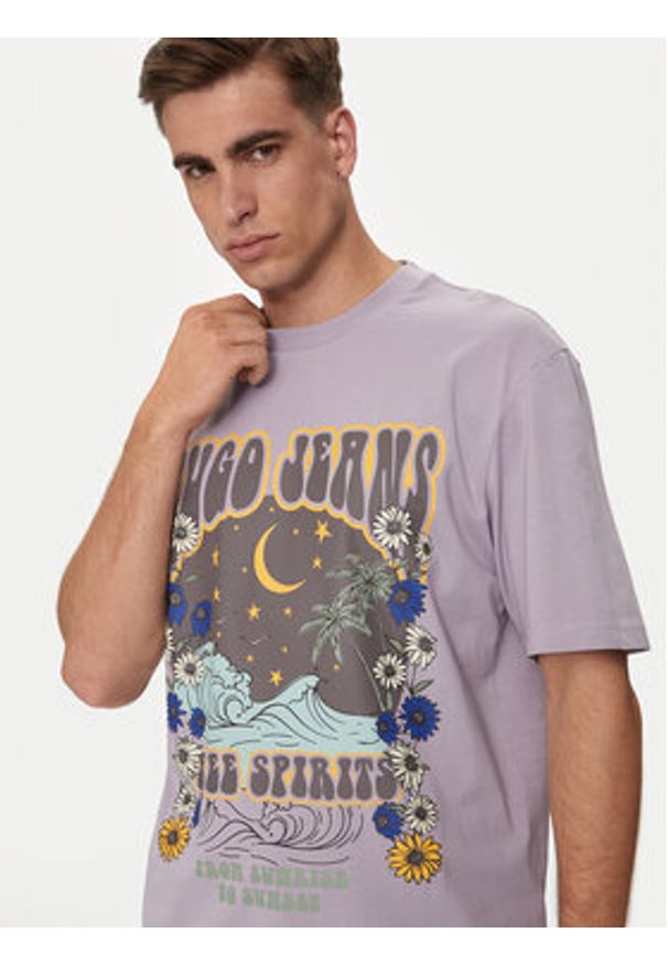 Hugo - HUGO T-Shirt Dapolino 50488330 Fioletowy Relaxed Fit. Kolor: fioletowy. Materiał: bawełna