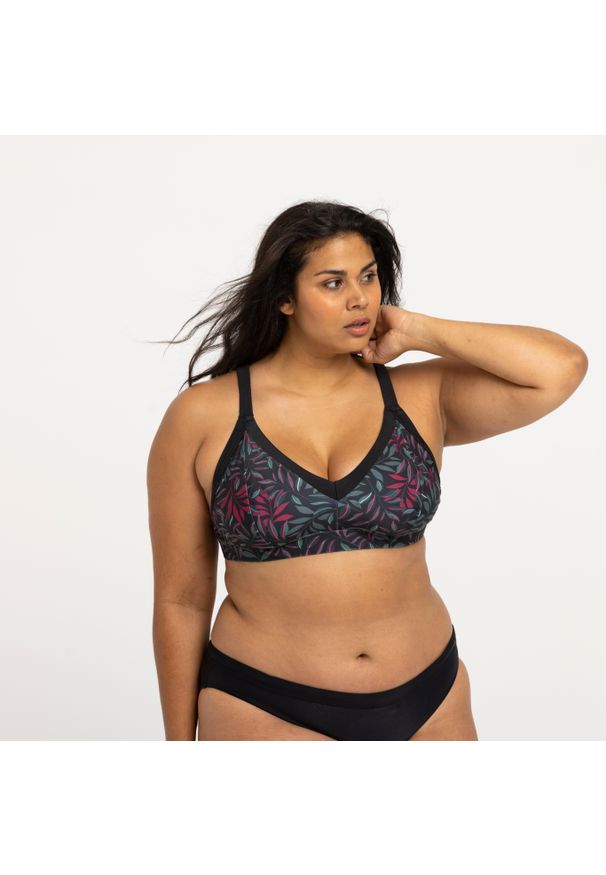 ULLA POPKEN - Damski Strój kąpielowy kwiaty miękkie miseczki dekolt w serek z recyklingu. Kolekcja: plus size. Kolor: zielony. Materiał: poliester, poliamid, materiał, elastan. Wzór: kwiaty