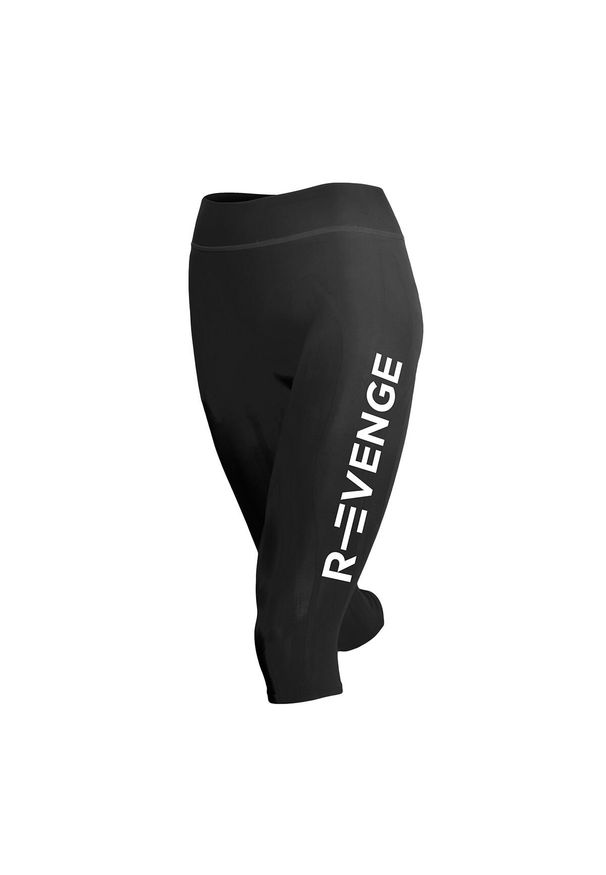 R-EVENGE - Legginsy techniczne do biegania Capri damskie z taśmami kinetycznymi. Kolor: czarny. Materiał: elastan