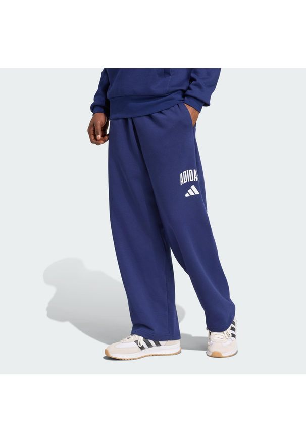 Adidas - Spodnie Collegiate. Kolor: niebieski, wielokolorowy, biały. Materiał: polar. Sport: fitness