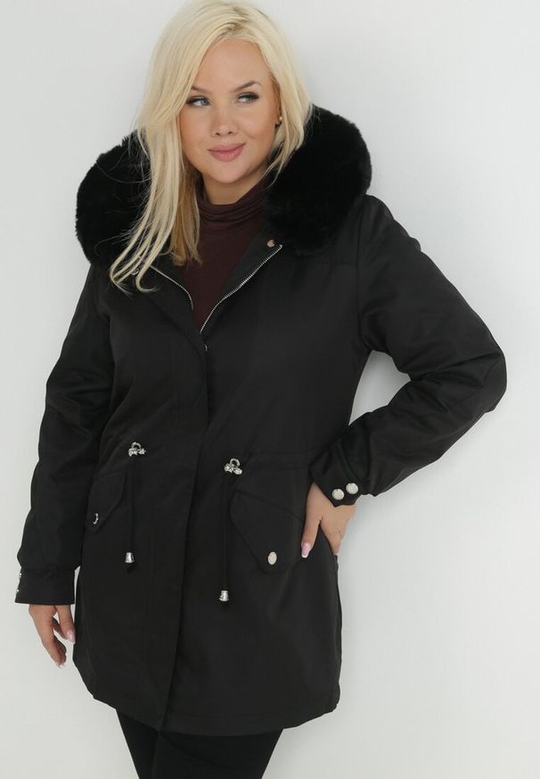 Born2be - Czarna Klasyczna Kurtka Parka z Kapturem z Futerkiem Essoria. Okazja: na co dzień, na spacer. Typ kołnierza: kaptur. Kolekcja: plus size. Kolor: czarny. Materiał: futro. Długość: długie. Styl: klasyczny