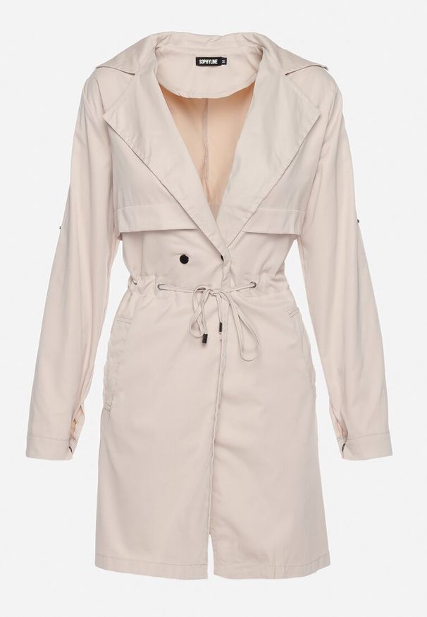 Born2be - Beżowa Kurtka Parka z Klasycznym Kołnierzem Ściągana w Pasie Troczkiem Revapia. Okazja: na randkę, do pracy, na spacer. Kolor: beżowy. Styl: klasyczny