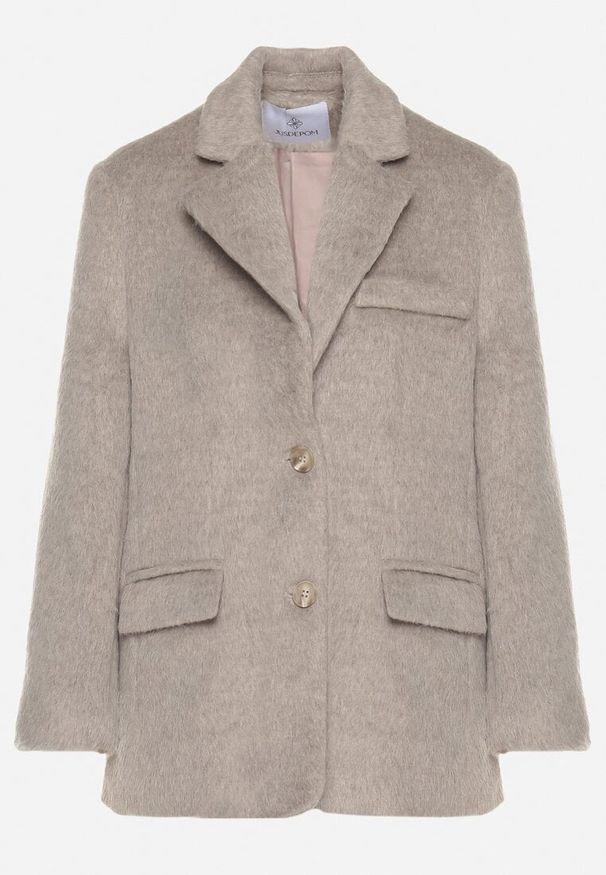Born2be - Beżowy Płaszcz Trencz Oversize na Guziki Kalei. Kolor: beżowy