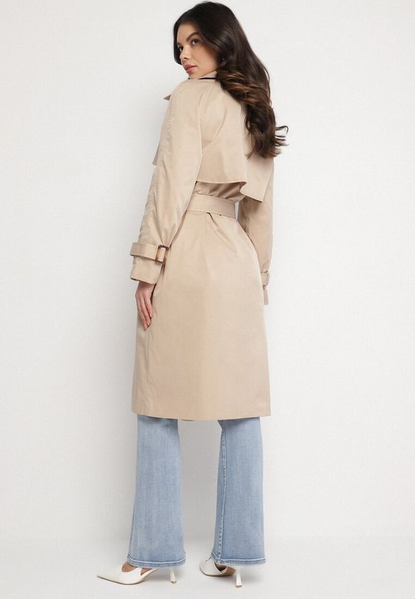 Born2be - Jasnobeżowy Długi Płaszcz Wiązany w Pasie z Wsuwanymi Kieszeniami Galattea. Okazja: na co dzień. Kolor: beżowy. Materiał: jeans. Długość: długie. Sezon: jesień, wiosna. Styl: wizytowy, klasyczny, casual, elegancki