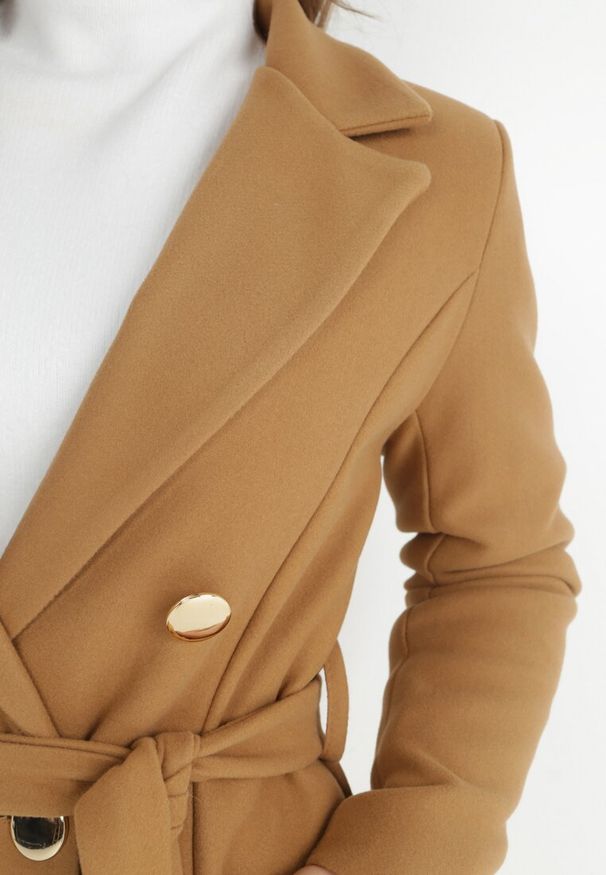 Born2be - Jasnobeżowy Długi Płaszcz Wiązany w Pasie z Wsuwanymi Kieszeniami Galattea. Okazja: na co dzień. Kolor: beżowy. Materiał: jeans. Długość: długie. Sezon: jesień, wiosna. Styl: wizytowy, klasyczny, casual, elegancki