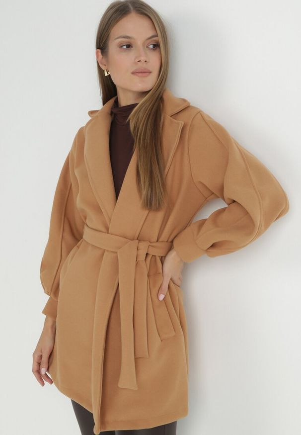 Born2be - Jasnobeżowy Klasyczny Płaszcz Typu Trencz na Guziki z Wiązanym Paskiem Naorivia. Okazja: na co dzień. Kolor: beżowy. Materiał: jeans, tkanina. Długość rękawa: długi rękaw. Długość: długie. Styl: klasyczny