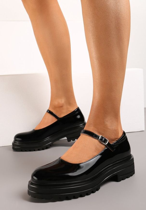 Wyprzedaż - czarne półbuty damskie lakierowane Renee, kolekcja zima 2025