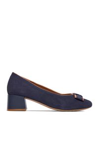 Granatowe Czółenka Armodo Eleganckie Obuwie Damskie Premium. Nosek buta: okrągły. Zapięcie: klamry. Kolor: niebieski. Materiał: syntetyk, materiał, skóra. Obcas: na obcasie. Styl: elegancki. Wysokość obcasa: średni