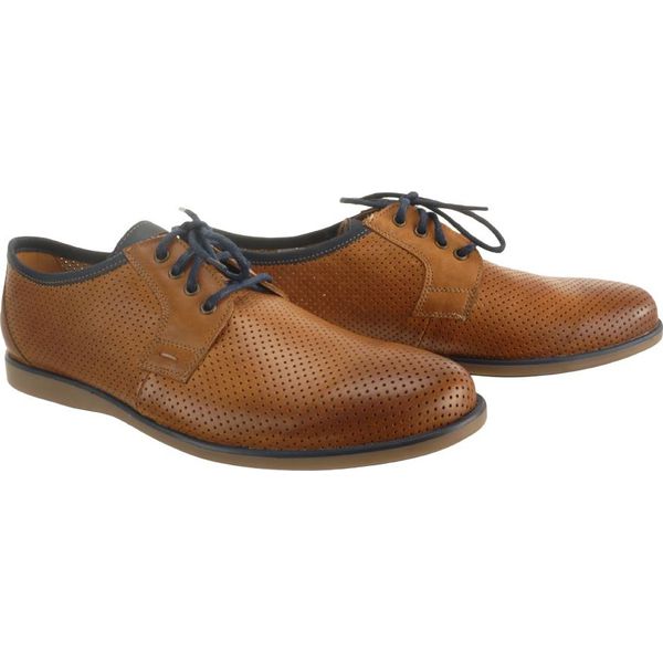 Półbuty męskie. Naturalna skóra. Perforowana cholewka. Miękka, skórzana wkładka. Sznurowanie. Elastyczna, trwała podeszwa.