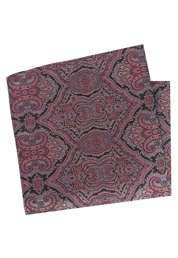 Męska, Elegancka Poszetka - Alties - Bordowa, Granatowy Wzór Paisley. Kolor: czerwony, niebieski, wielokolorowy. Materiał: poliester. Wzór: paisley