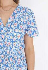 Born2be - Niebieska Sukienka z Wiskozy z Kopertowym Dekoltem i Gumką w Pasie w Kwiaty Kaseri. Okazja: na co dzień. Typ kołnierza: dekolt kopertowy. Kolor: niebieski. Materiał: wiskoza. Wzór: kwiaty. Sezon: jesień, wiosna. Typ sukienki: kopertowe. Styl: casual, elegancki
