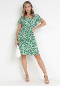 Born2be - Zielona Sukienka z Wiskozy w Kwiaty i Gumką w Pasie Alixeme. Kolor: zielony. Materiał: wiskoza. Wzór: kwiaty. Sezon: lato #4