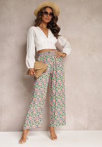 Renee - Zielono-Różowe Wiskozowe Spodnie High Waist Szerokie z Gumką w Pasie i Kieszeniami Aizha. Stan: podwyższony. Kolor: zielony. Materiał: wiskoza #5