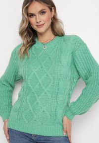 Zielony sweter Born2be ze splotem, na zimę