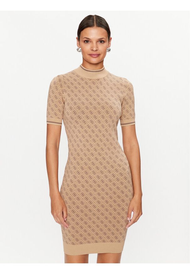 Guess Sukienka dzianinowa Sarah W4BK98 Z3JD2 Beżowy Slim Fit. Kolor: beżowy. Materiał: syntetyk