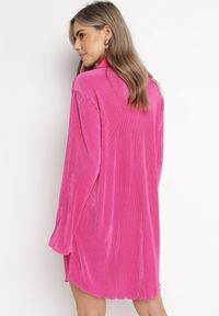 Fuksjowa Plisowana Sukienka Mini o Koszulowym Kroju Unvelc. Odkryj wyjątkową plisowaną sukienkę mini Unvelc! Jej koszulowy krój z klasycznym kołnierzykiem oraz długimi rękawami nadaje jej elegancji, przy jednoczesnym zachowaniu swobody. Materiał w delikatny wzór z plisami sprawia, że sukienka jest idealna zarówno do biura, jak i na weekendowe wyjścia. W stylizacji na co dzień wystarczy zestawić ją z białymi sneakersami i jeansową kurtką, aby uzyskać świeży, casualowy look. Na formalne okazje dodaj do niej szpilki oraz subtelną biżuterię, a stworzysz olśniewającą, elegancką stylizację. Efekt wow gwarantowany! Sukienka nie posiada podszewki.