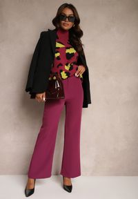 Renee - Fioletowe Spodnie Garniturowe High Waist z Paskiem Wenus. Okazja: na co dzień, na spotkanie biznesowe. Stan: podwyższony. Kolor: fioletowy. Materiał: materiał, tkanina. Wzór: gładki, jednolity. Styl: biznesowy, casual